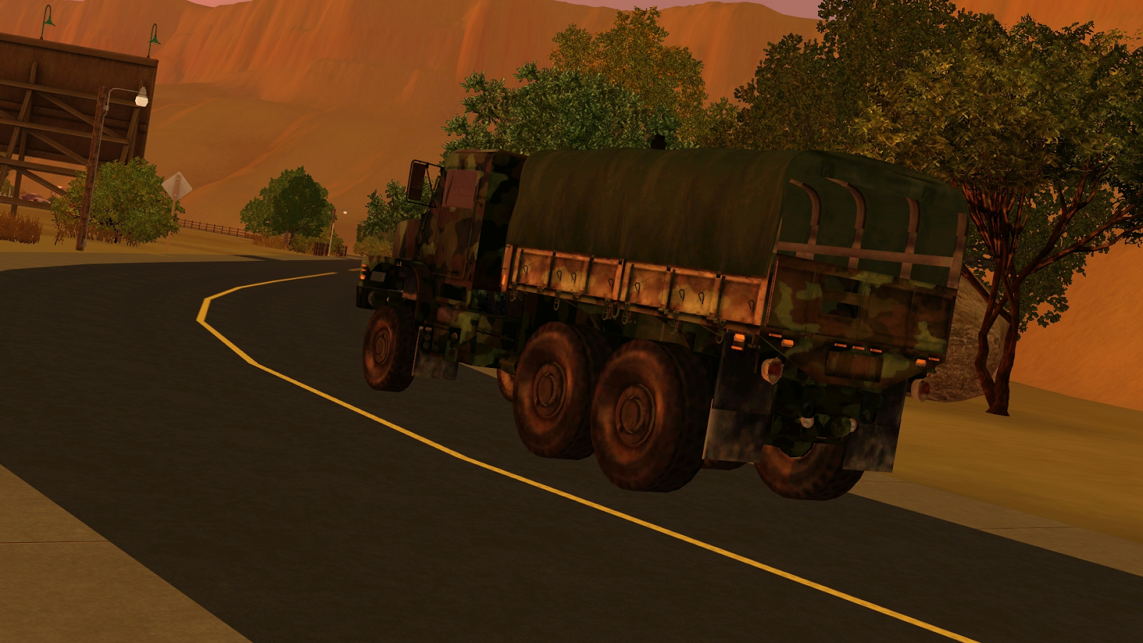 the road as we barreled down the highway. The sun had begun to set over the large